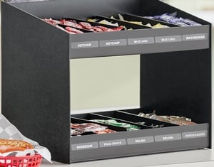 Removable dividers allow you to customize the number of condiment compartments to fit your needs. Plus, this organizer's classic black color helps conceal signs of wear and allows it to seamlessly complement your existing decor. Its smart, space-efficient design promotes a professional and orderly display.