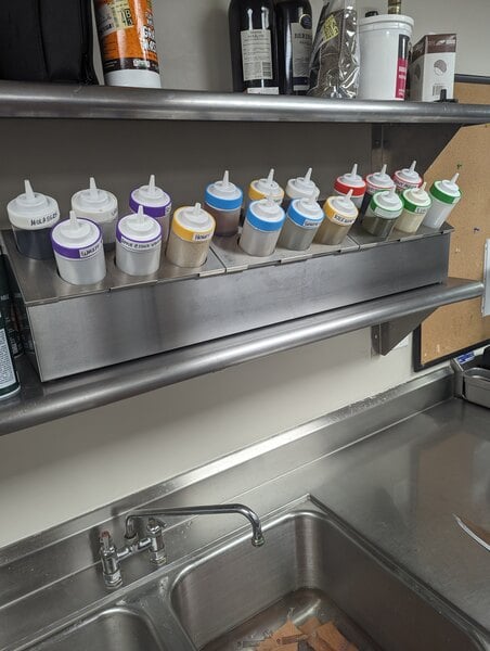 This condiment holder is perfect. Holds everything we need for the concession stand. Light weight and easy to move. Shipped very fast, highly recommend.