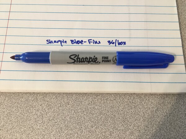 Great permanent markers! Sharpies write on most surfaces, and the ink is durable. The caps on these markers does have a pocket clip (unlike some of the newer Sharpies) which I like. The blue color is a nice addition to the standard black.