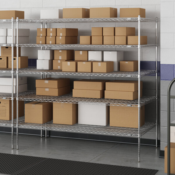 Designed for use in dry environments, this shelving unit is an excellent choice for organizing and maximizing storage space. Whether you're looking to streamline your warehouse operations or simply need additional storage in your industrial facility, this heavy-duty shelving kit is the perfect solution. Mix and match with Lavex Pro accessories (sold separately) to personalize your kit! Invest in the Lavex Pro chrome heavy-duty 5-shelf kit and experience the durability and functionality it brings to your workspace.