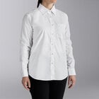 Highlight the sophistication of your establishment with this Henry Segal women's white long sleeve dress shirt. Featuring a pure white color and a stylish yet understated collar, this shirt delivers a clean, professional appearance at an affordable price point that's sure to elevate your overall presentation while saving you money. Made from a quality 60/40 cotton-polyester broadcloth, this shirt does not sacrifice strength for maneuverability either, as it is soft enough to encourage breathability throughout shifts and tightly-woven to endure the demands of daily commercial use. The blended material also resists wrinkling and shrinking and is machine washable, making it easy for your staff to maintain that desired sharp, clean look.