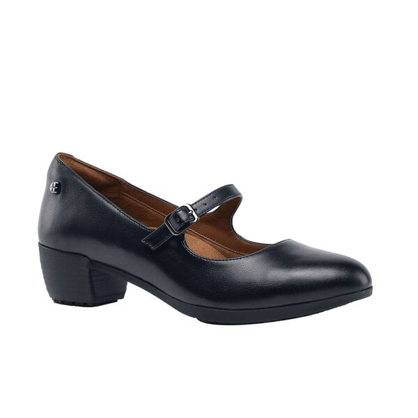 Add the final touch to your elegant outfit with this Shoes For Crews 58565 Vita women's size 8 medium width black water-resistant soft toe non-slip dress shoe. Thanks to its 1 1/2" heel, tailored fit, and leather upper material, this shoe is great to wear for formal events or banquets. Inside, the removable insole and EVA infused midsole provide a soft inner layer that reduces stress from standing or walking for long periods of time.