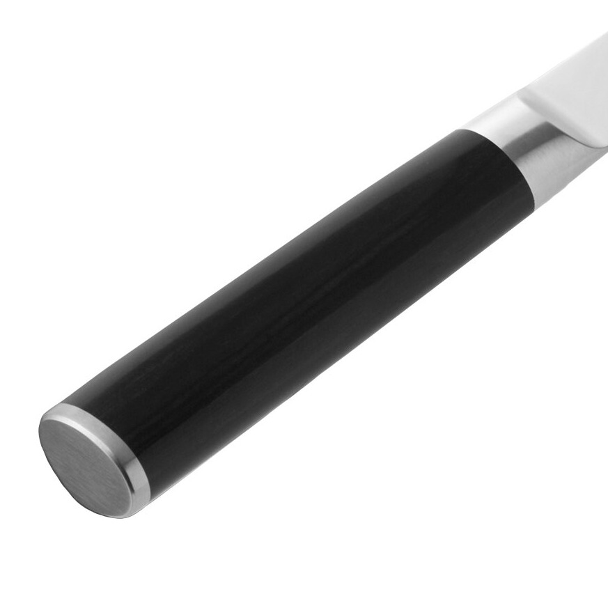 Resistant to corrosion and wear, this knife is also constructed with a full composite tang for superior balance. Plus, the Pakkawood handle provides a comfortable, secure grip for both left- and right-handed use. It is also extremely durable, and it won't crack or separate from the blade, thus extending the life of your knife.