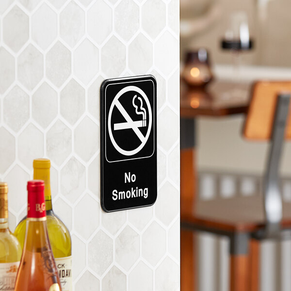 This no smoking sign made by Lavex is an awesome quality sign. It is made of very durable plastic and it is firm. I love how they add the self adhesive mounting option on the back so you can easily stick this to a wall. This is great for restaurants, hospitals, gas stations, etc. I highly recommend this sign.