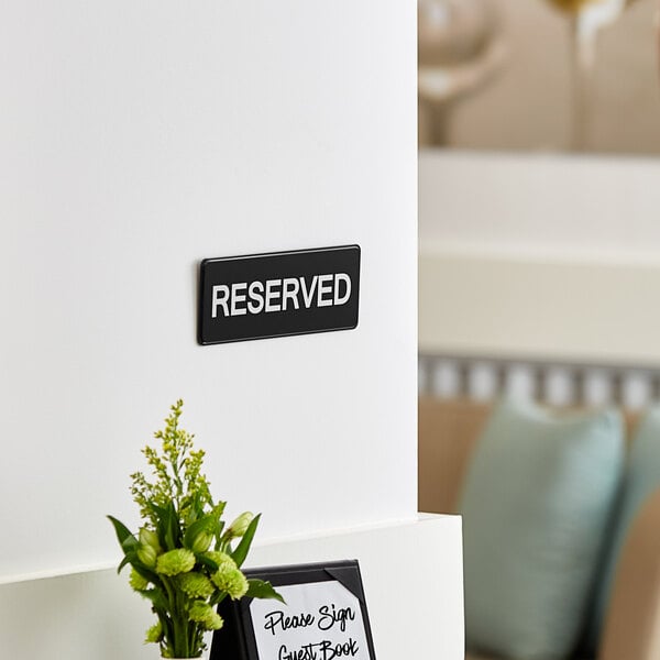 Crafted from durable plastic, this reserved sign is built to last and withstand daily use in your commercial establishment. The sign can simply be hung near banquet rooms or lounge areas that are reserved for special parties or VIP personnel. It'll ensure that other guests know where not to go when looking for an open table or seat.