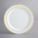 Featuring a classic silver band pattern along the wide outer rim, this plate's contrast between rim and stark white body is sure to draw attention while adding an upscale look to your wedding receptions, banquets, or other catered events.