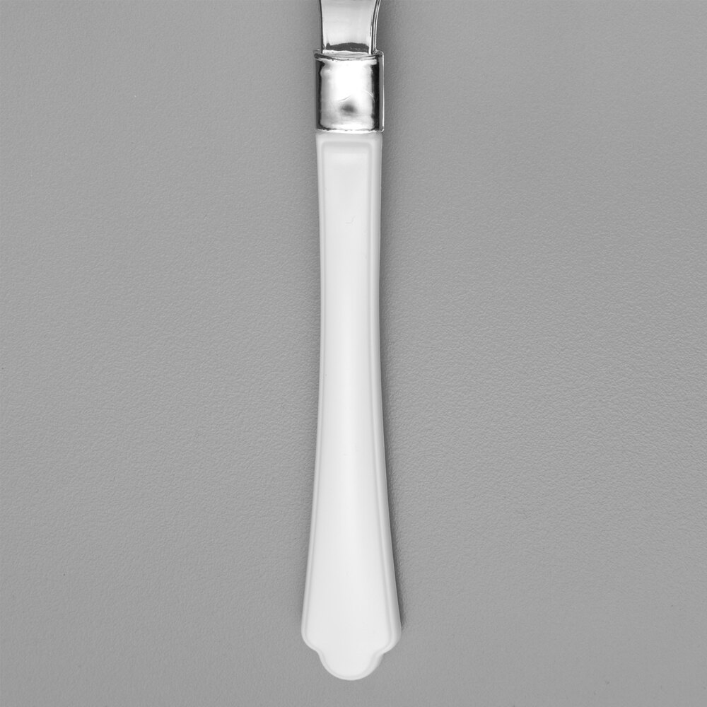 • Combines the silver sparkle of flatware with a sleek white handle that is easy-to-grip