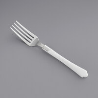 This Visions Empire 6 1/2" extra heavy weight plastic spoon with white handle makes the ideal addition to catered wedding receptions, retirement parties, and anniversary occasions! The white handle and the silver sparkle give this piece an authentic, stunning appearance. When used alongside upscale disposable plastic plates, cups, and bowls, the Visions Empire spoon fits right in for fast, efficient service. Simply dispose of the spoon when finished - it's that simple!