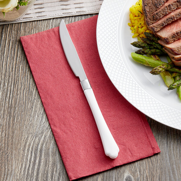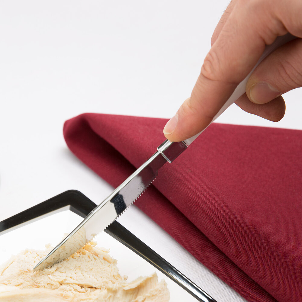 Do not purchase if you are serving steak or anything else that requires a decent utensil. The forks broke at the joint between the fork and the handle. The knives would not cut the tender steak. These are not worth the price or the time. Complaints from clients too numerous. They look lovely, but simply do not work.