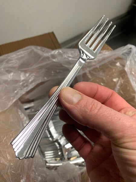 Thank you for your review, Jane! We are sorry this Silver Visions 7 inch Heavy Weight Silver Plastic Fork - 600/Case did not meet your expectations. A Customer Solutions Representative will contact you soon!
