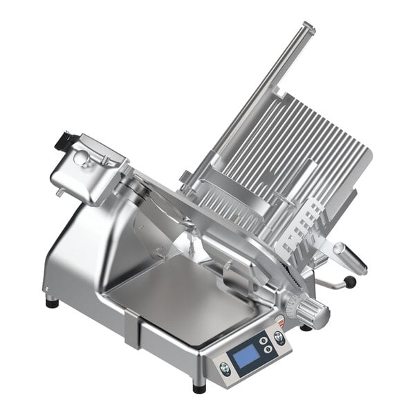 Serve high-quality meats in your bistro, market, or deli with this Sirman Palladio 330 Evo Top manual meat slicer! This high-quality meat slicer is designed for high-volume retail applications. It features a heavy-duty, fan-cooled 1/2 hp motor for continuous operation and high torque, allowing for both meat and cheese slicing. Its 13" blade creates slice thicknesses up to 1", and it is easy to operate with an IP67-protected stainless steel keypad. Its compact footprint makes it ideal for kitchens with limited space.
