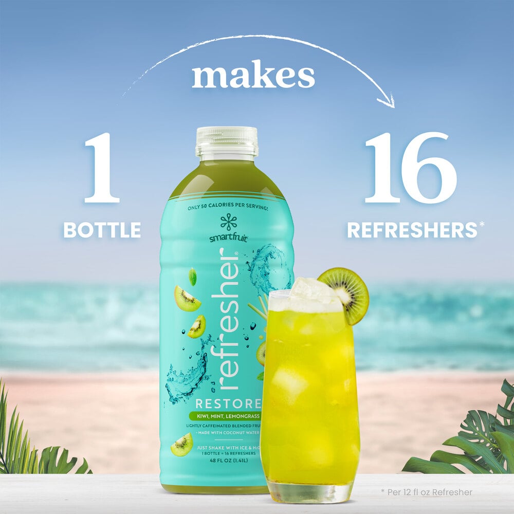 Crafted with natural, whole fruit ingredients like coconut water, kiwi puree, lemongrass puree, mint extract, pineapple juice, and apple juice, this refresher concentrate offers hydration with electrolytes, vitamins, and minerals. Plus, with the inclusion of green coffee bean extract, this refresher gives a natural boost of energy without the coffee taste.