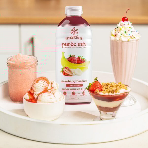 Revamp your beverage menu with the addition of this Smartfruit strawberry bananza puree beverage mix.