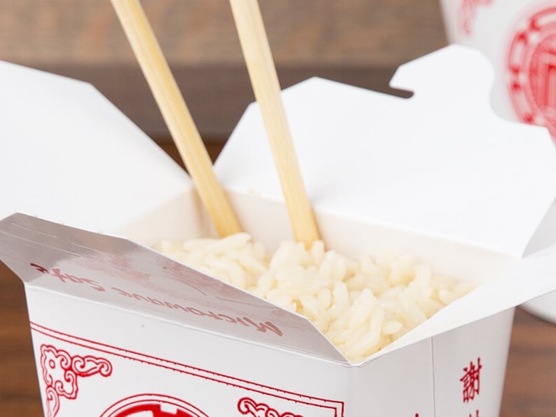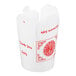 Thanks to its bold, printed exterior, this Fold-Pak SmartServ 16 oz. take-out container is a popular addition to Asian / Chinese restaurants and trendy eateries or cafes. While its red illustrations and unique script add a pleasing pop of color for everyone to enjoy, its white backdrop provides a crisp, clean look that is sure to impress. Plus, its versatile size can be used to carry out most of your menu items with ease. Its leak-and grease-resistant packaging also keeps hot, cold, wet, or dry foods fresh following transportation from the back-of-house. The efficient one-piece design of this container is hassle-free as well.