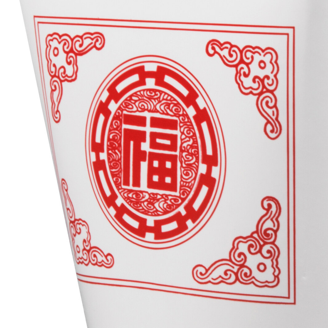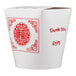 Thanks to its bold, printed exterior, this Fold-Pak SmartServ 32 oz. take-out container is a popular addition to Asian / Chinese restaurants and trendy eateries or cafes. While its red illustrations and unique script add a pleasing pop of color for everyone to enjoy, its white backdrop provides a crisp, clean look that is sure to impress. Plus, its versatile size can be used to carry out most of your menu items with ease. Its leak-and grease-resistant packaging also keeps hot, cold, wet, or dry foods fresh following transportation from the back-of-house. The efficient one-piece design of this container is hassle-free as well.