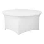 Designed with both style and convenience in mind, this Snap Drape CN420R6030014 Contour Cover 60" round black spandex table cover is an ideal addition to tables at your restaurant, casino, or catered event! Unlike traditional linens, this cover easily slides over 60" round, 30" high tables for protection and fits snugly to eliminate wrinkling without ironing. It also boasts reinforced rubber feet that simply slide under table legs, ensuring it doesn't move or tear while guests enjoy your signature dishes, drinks, or desserts.