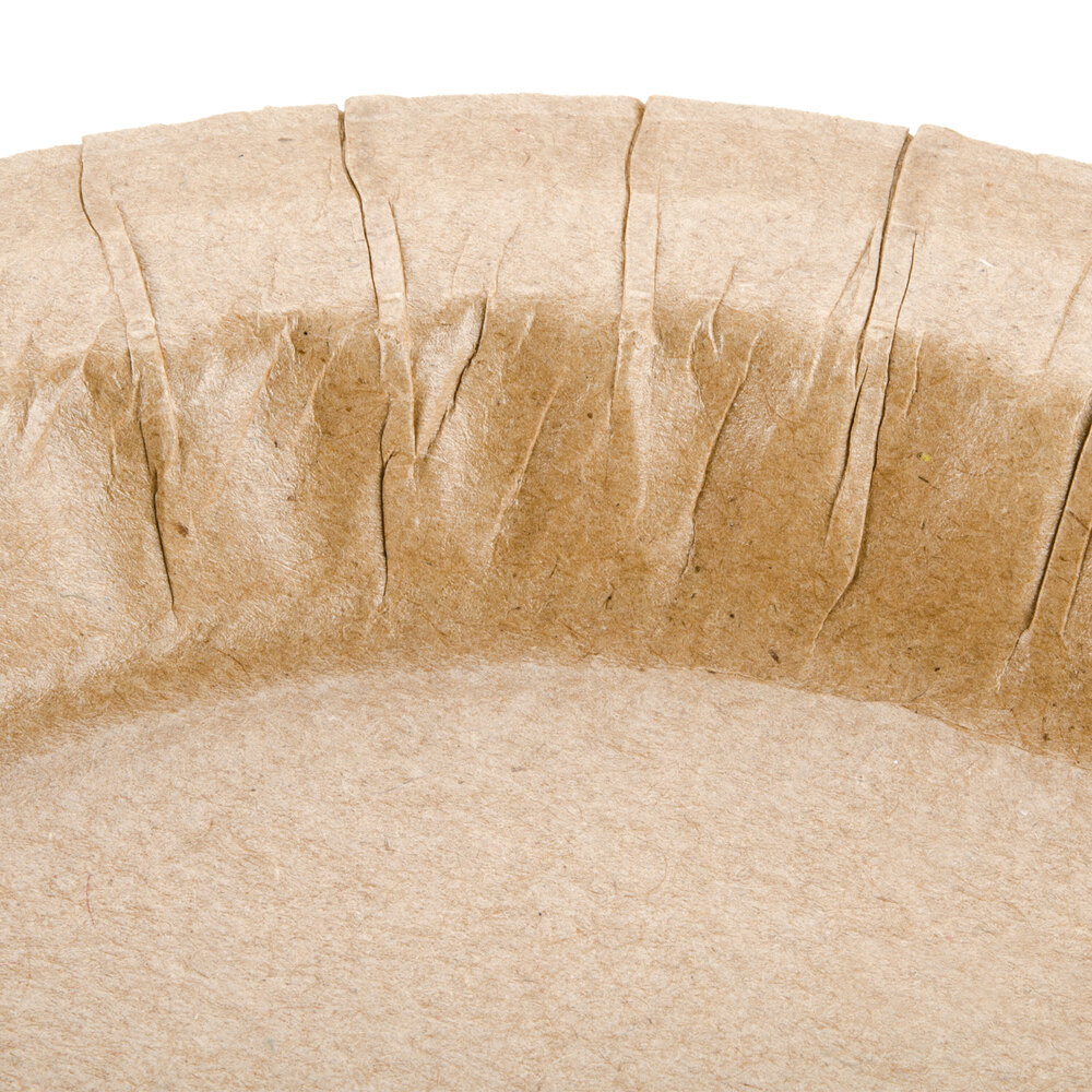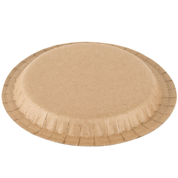 This Solut 27020 7 1/2" coated kraft paper plate is cut, leak, and moisture resistant, so you can use it to serve anything from hot side dishes to cold salads. A strong 3-ply construction also makes this plate extremely durable. It even features a deep dish design to lower the risk of food spilling off the side of the plate. Best of all, this plate is fully recyclable, and its earthy brown color will let customers know that it’s eco-friendly.