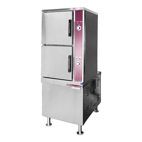 - Stainless steel with 2 insulated cooking chambers and steam generator base