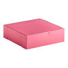 Showcase your delicious bakery treats in this Southern Champion 10" x 10" x 3" pink pie / bakery box! Made of durable one-piece paperboard, this box is perfect for securing your delectable creations. The attached tuck-in lid and lock corners ensure that the box remains closed, keeping your baked goods fresh and protected. The plain design of this box also allows for a variety of customization options to advertise your business (sold separately).