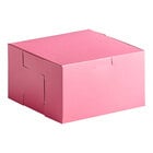 Showcase your delicious bakery treats in this Southern Champion 7" x 7" x 4" pink cake / bakery box! Made of durable one-piece paperboard, this box is perfect for securing your delectable creations. The attached tuck-in lid and lock corners ensure that the box remains closed, keeping your baked goods fresh and protected. The plain design of this box also allows for a variety of customization options to advertise your business (sold separately).