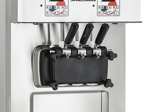 Expand your menu to offer soft serve style ice creams, custards, yogurt, gelato, or sorbet with this Spaceman pressurized dual flavor high-output twin twist free-standing ice cream machine!