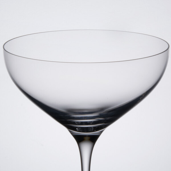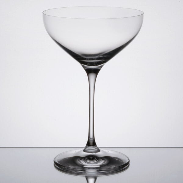 The sleek silhouette of this 8.5 oz. glass provides a polished look that customers will love, while the wide bowl atop a long, delicate stem adds a splash of timeless elegance. Plus, the sparkling, crystal clear design will beautifully showcase your martinis and other cocktails.