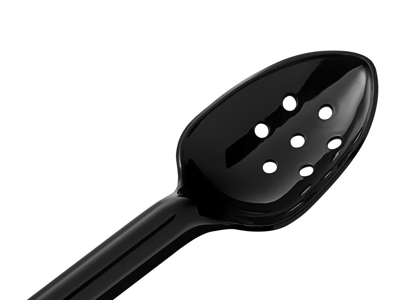 This Visions 12" black disposable plastic slotted serving spoon is the perfect addition to your catering and party supplies!