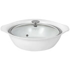 This casserole pan is made of durable, scratch-resistant cast aluminum with a stainless steel core. This construction makes the pan heat up quickly and evenly, allowing you to cook your dishes perfectly every time. It comes with a tempered, steam-release glass cover so you can protect your dishes from harmful contaminants as you display them. The cover is reinforced with a brushed stainless steel rim for added longevity and damage-resistance. The pan's curled handles prevent deterioration and stop bacteria from accumulating, making this pan a sanitary and sustainable option. Attractive, convenient, and extremely durable, this Spring USA Motif non-stick casserole pan will make a great addition to any food service establishment!