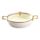 This dish features 2 antimicrobial brass handles for safe and easy transporting. Its textured ceramic coating is both stain- and chip-resistant, and it's safer than non-stick dishes and lighter than cast-iron cookware. It comes with a glass dome cover so you can protect your dishes from harmful contaminants as you display them. The cover is reinforced with an antimicrobial brushed brass rim and top carrying knob. Able to withstand temperatures up to 500 degrees Fahrenheit, this Spring USA Venice induction-ready chafer casserole dish will make a great addition to any food service establishment!