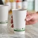 This cup's commercially compostable design is durable enough to stand up to a variety of hot drinks, providing convenient and environmentally-friendly single-service use. Plus, it's leak-resistant to ensure your guests have a comfortable and pleasant drinking experience. This cup also pairs with a compatible lid (sold separately) that will prevent beverages from spilling during transport.