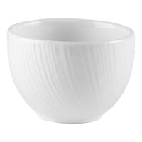 Enhance your dining presentation with this Steelite Distinction Spyro 4 5/8" white embossed saucer. This saucer features a decorative swirling embossment that catches the light, creating an eye-catching tabletop display. Boasting a contemporary design with a traditional flair, this saucer's classic white color seamlessly integrates into catering events and upscale dining settings. It is sure to elevate the visual appeal of any table presentation. It is compatible with cups from the Steelite Distinction Spyro collection (sold separately).