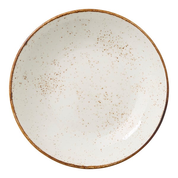 Elevate your tabletop presentation with this Steelite Performance Craft 1.375 qt. white coupe bowl. Featuring a rustic design inspired by generations of handcrafted pottery, this bowl combines traditional charm with contemporary appeal. Its bold brown rim and unique speckled pattern give each piece a one-of-a-kind look, making it a distinctive choice for any table setting.