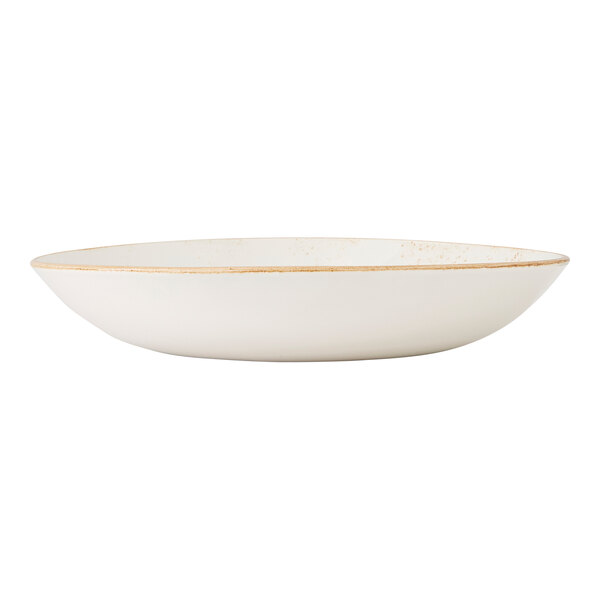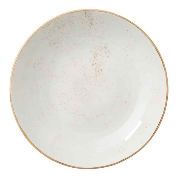 Elevate your tabletop presentation with this Steelite Performance Craft 2 qt. white coupe bowl. Featuring a rustic design inspired by generations of handcrafted pottery, this bowl combines traditional charm with contemporary appeal. Its bold brown rim and unique speckled pattern give each piece a one-of-a-kind look, making it a distinctive choice for any table setting.
