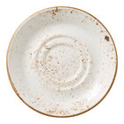 Perfect for serving coffee, tea, or other hot beverages, this saucer is crafted from durable alumina vitrified china, ensuring long-lasting performance in high-volume settings. Its sturdy construction means it can withstand frequent use while maintaining its beautifully crafted appearance. Whether used in casual bistros, upscale cafes, or contemporary restaurants, this saucer brings a warm, artisanal touch to any dining experience.