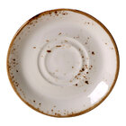 Perfect for serving coffee, tea, or other hot beverages, this saucer is crafted from durable alumina vitrified china, ensuring long-lasting performance in high-volume settings. Its sturdy construction means it can withstand frequent use while maintaining its beautifully crafted appearance. Whether used in casual bistros, upscale cafes, or contemporary restaurants, this saucer brings a warm, artisanal touch to any dining experience.