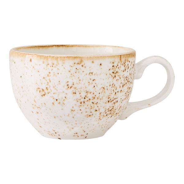 Perfect for serving coffee, tea, or other hot beverages, this cup is crafted from durable alumina vitrified china, ensuring long-lasting performance in high-volume settings. Its sturdy construction means it can withstand frequent use while maintaining its beautifully crafted appearance. Whether used in casual bistros, upscale cafes, or contemporary restaurants, this cup brings a warm, artisanal touch to any dining experience.