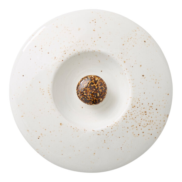 This lid is a direct replacement for the one that came with your Steelite Performance Craft 15 oz. white soup bowl base. Featuring a rustic design inspired by generations of handcrafted pottery, this lid combines traditional charm with contemporary appeal. Its unique speckled pattern gives each piece a one-of-a-kind look, making it a distinctive choice for any table setting. Crafted from durable alumina vitrified china, this lid provides long-lasting performance, making it ideal for frequent use in busy environments.