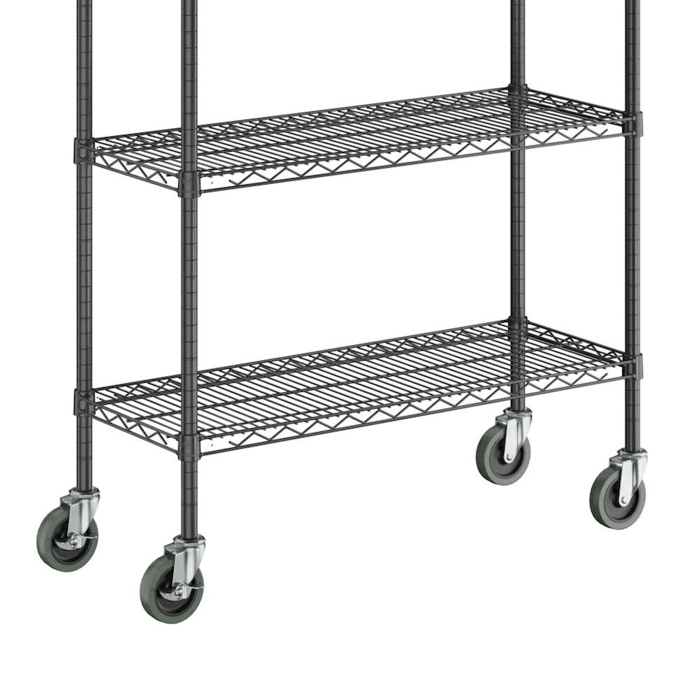 Keep your storage area organized with the commercial-grade Steelton 14" x 36" NSF black epoxy 5-shelf kit with 72" posts and casters!