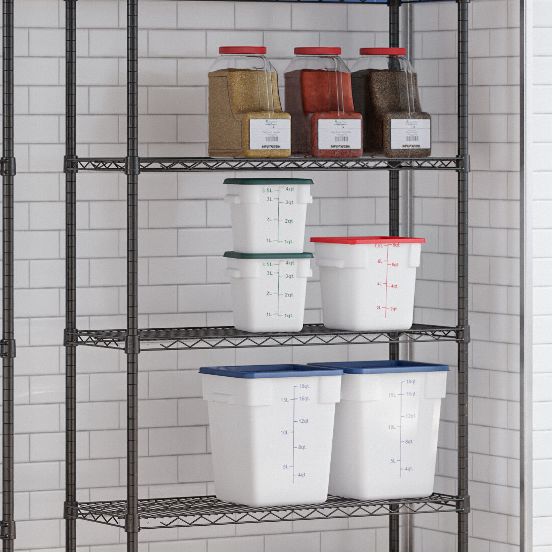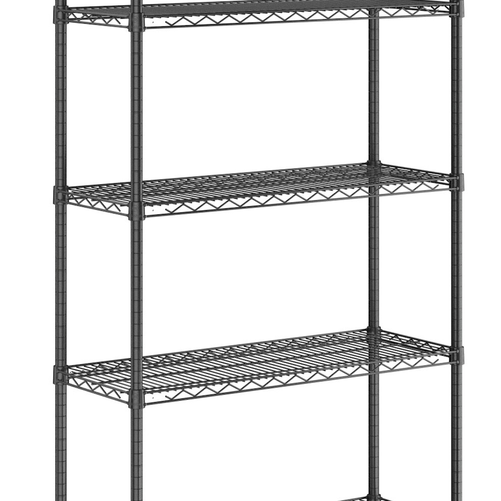 This black epoxy shelf kit includes (5) wire shelves and (4) 72" posts, which allow you to create a convenient storage solution for your janitorial closet, warehouse, or walk-in cooler. Incredibly easy to install, this kit can be quickly assembled once it arrives so that you can begin using it immediately!