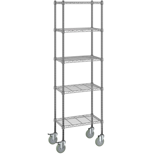 Keep your storage area organized with the commercial-grade Steelton 14" x 24" NSF chrome 5-shelf kit with 72" posts and casters!