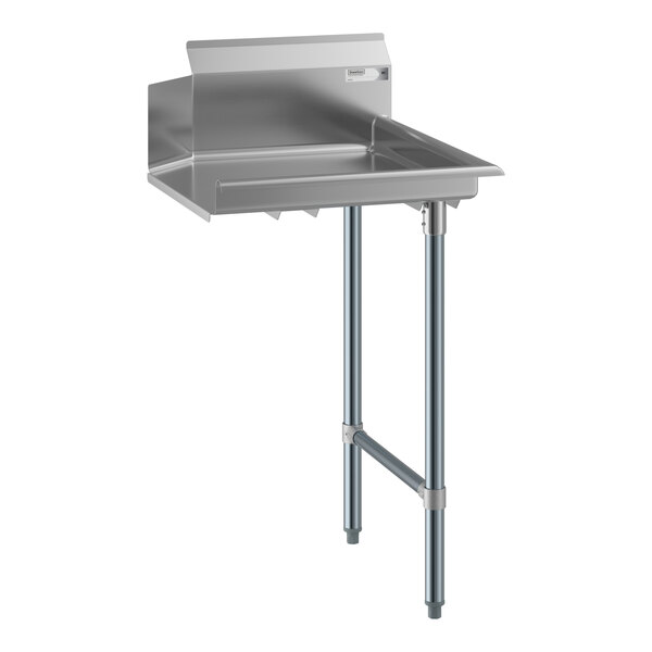 Built to withstand busy kitchen environments, it is made of durable 18-gauge, type 304 stainless steel with galvanized steel legs. It features a lip to attach to the right side of your dishwasher. This unit stands on durable bullet feet for stable use.