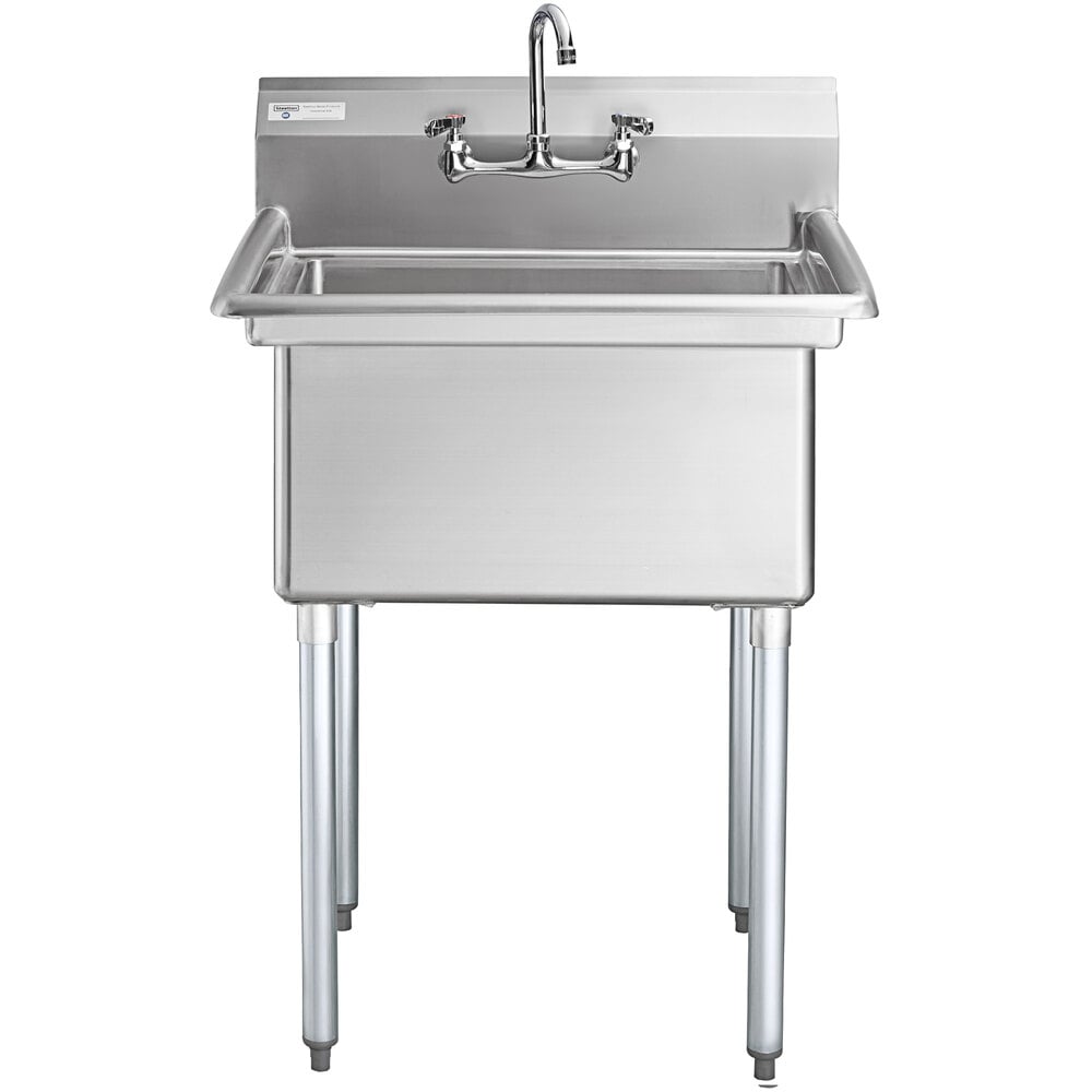 This model is perfect for light-duty applications that don't require an expensive heavy-duty sink, providing all of the functionality you need at an affordable price point. It's made of stainless steel for durability and corrosion-resistance with a bowl perfectly sized for washing pots and for food prep. A gooseneck faucet is also included, so there's one less component to purchase before installing the sink. Equipped for your commercial business, the sink alone is NSF certified.