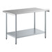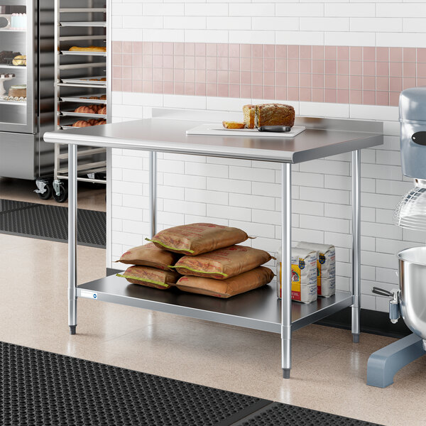 The undershelf is adjustable, allowing you to assemble the table to fit your space and storage requirements. With a rolled front edge, this work table ensures safety and comfort during use. This table also includes a 2" backsplash to protect walls and keep supplies securely in place. Whether you need extra workspace for food prep or a place to store light supplies, this stainless steel work table is a versatile and valuable addition to your commercial kitchen. Streamline your kitchen operations with the Steelton 30" x 48" work table.