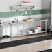 Enhance your kitchen's efficiency with the Steelton 30" x 96" 16 gauge 430 stainless steel work table with undershelf! Constructed from durable 16 gauge, type 430 stainless steel, this work table is built to withstand the demands of lower volume kitchens and startups. Ideal for areas of your business that don't require a heavy-duty table, this cost-effective work table is great for prepping vegetables, opening cans, mixing ingredients, and storing light items, such as cutting boards, towels, or sanitizing pails. The galvanized steel legs and undershelf provide additional stability and support.