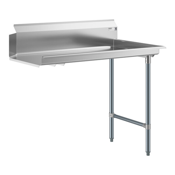 Built to withstand busy kitchen environments, it is made of durable 18-gauge, type 304 stainless steel with galvanized steel legs. It features a lip to attach to the right side of your dishwasher. This unit stands on durable bullet feet for stable use.