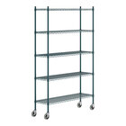 Steelton 465G1448K75C 14" x 48" NSF Green Epoxy 5-Shelf Kit with 72" Posts and Casters