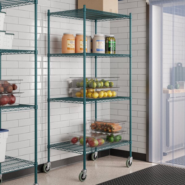 Steelton 465G2436K74C 24" x 36" NSF Green Epoxy 4-Shelf Kit with 72" Posts and Casters