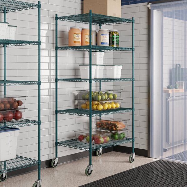 Steelton 465G2436K75C 24" x 36" NSF Green Epoxy 5-Shelf Kit with 72" Posts and Casters