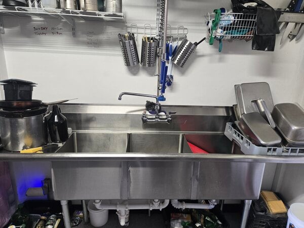 If your business needs a sink that will keep up with demand without breaking the bank, check out this Steelton three-compartment sink. This model is perfect for light-duty applications that don't require an expensive heavy-duty sink, providing all of the functionality you need at an affordable price point!