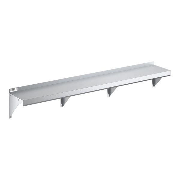 This shelf features a slim, space-saving profile. It includes 4 support brackets for easy wall mounting (hardware sold separately), allowing you to maximize your storage capacity without using valuable counter space. Keep ingredients, dishes, and kitchen tools from cluttering your work area with this reliable shelf.
